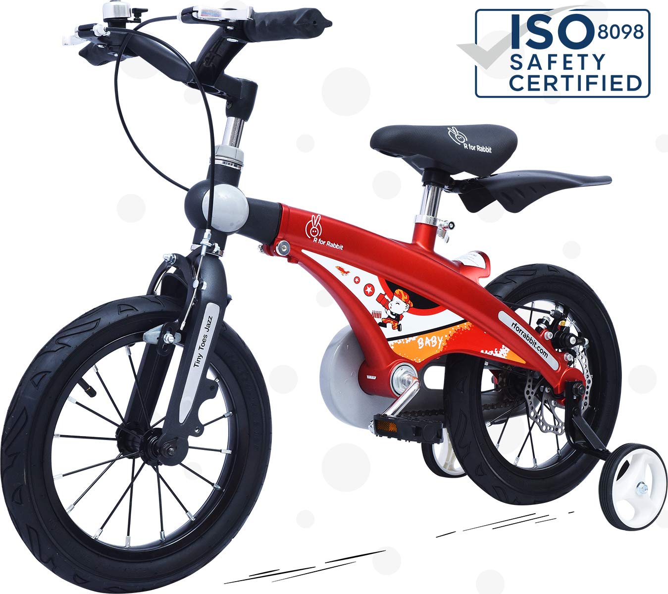 - Safety 1st: Tiny Toes Jazz comes packed with ISO 8098 Safety certification and all Safety Features that makes Biking Fun. It comes with fully enclosed Chain Guard, Safety Grips, Heavy Duty Training Wheels along with Disk Brakes.