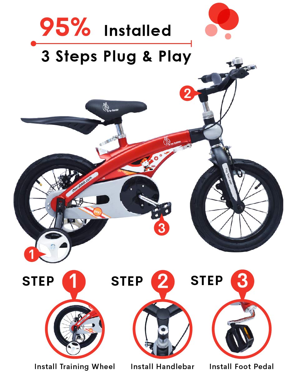 - Plug N Play: We understand the hassle of Assembling the Bicycle. That’s where our focus was, not just smart design but easy installation process. R for Rabbit Tiny Toes Jazz is Plug N Play bicycle with 95% pre-installation and has 3 steps or 5 min installation process