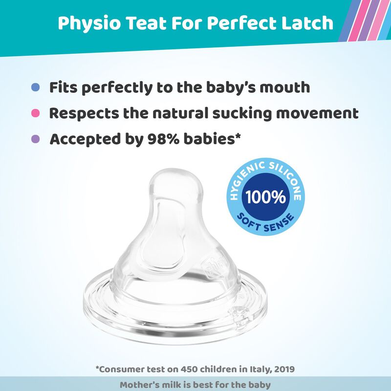 - The physio teat adapts perfectly to the mouth of the baby and aids the natural way of sucking