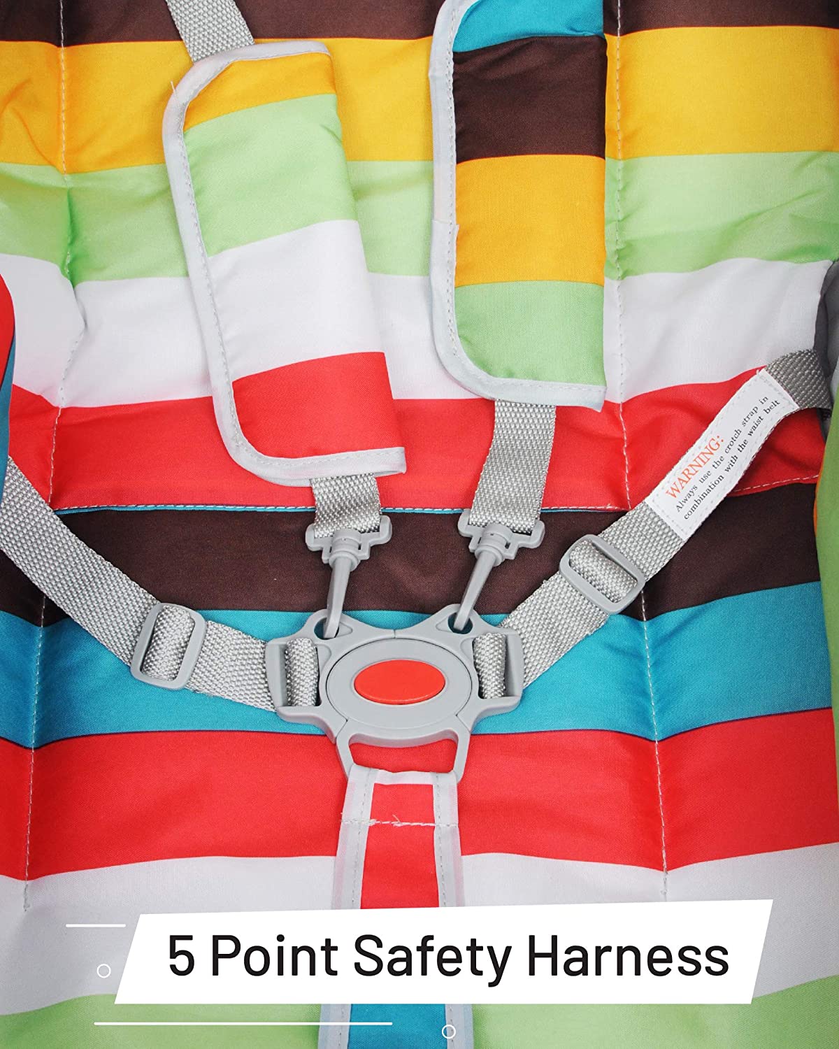- 5 Point Safety Harness – Got 5 point safety harness to hold your baby in most safe position while strolling