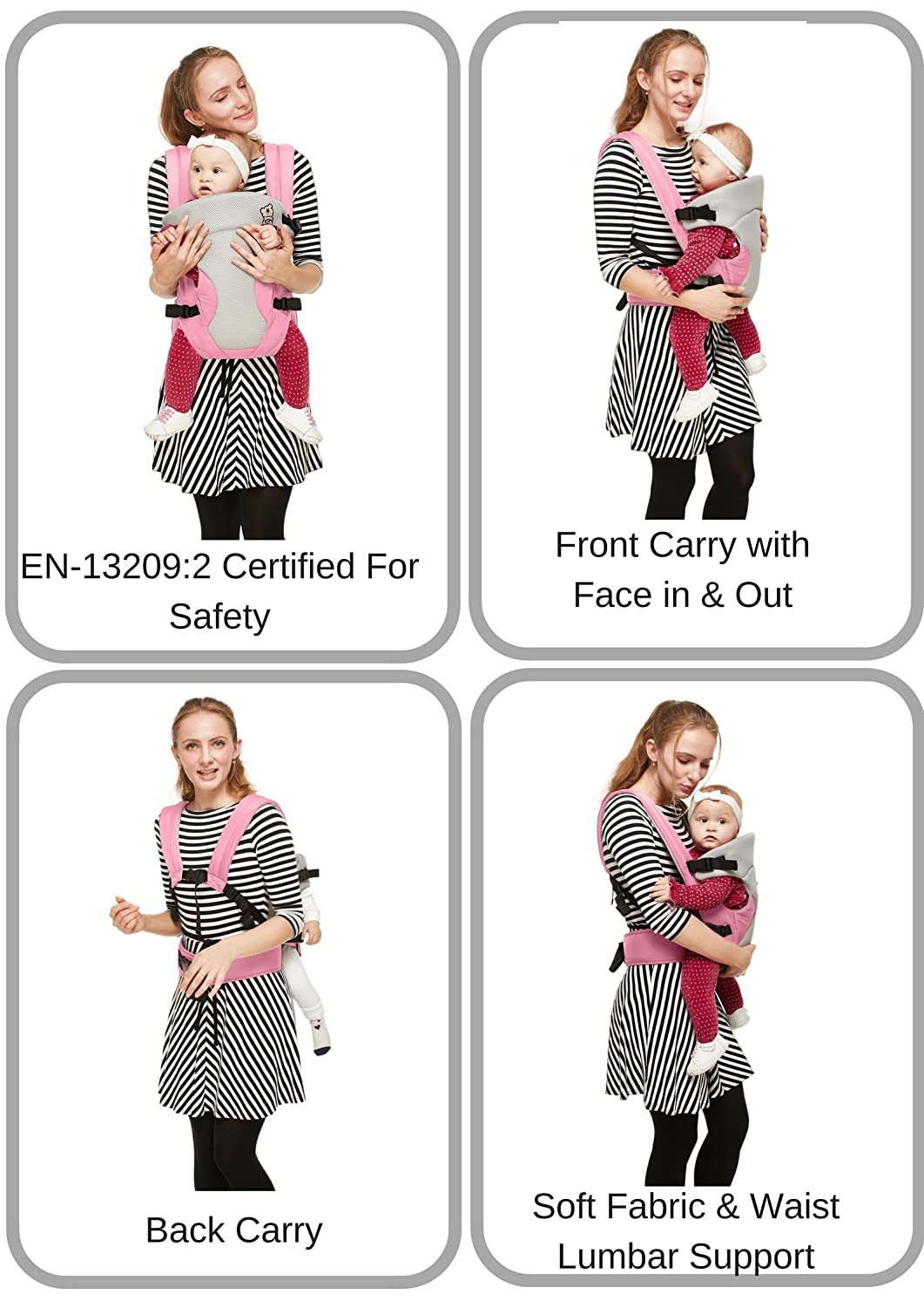 R FOR Rabbit New Cuddle Snuggle- Comfortable Baby Carrier (Pink Grey)