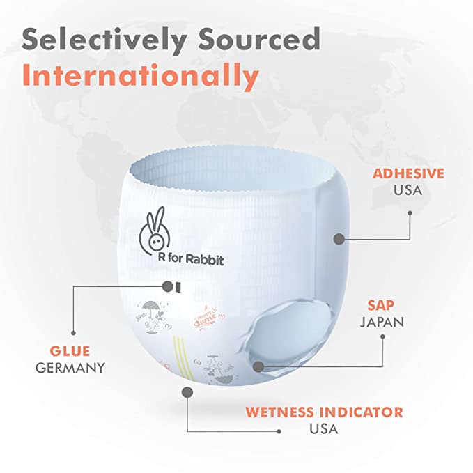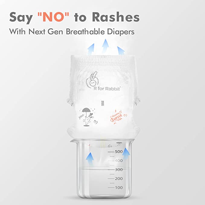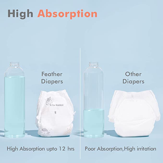 - ●Breathable Diapers: R for Rabbit Feather S Size Diapers for S size having 10 Million* Breathable pores which allows the air to easily pass through, making the diapers highly breathable and acting as a rash guard for your baby by instantly locking moisture in.