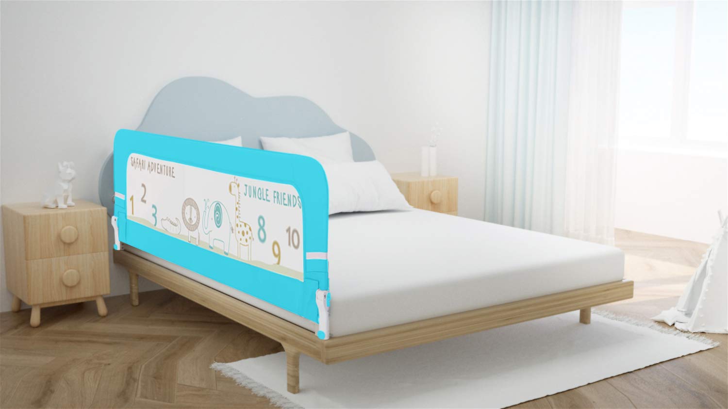 R for Rabbit Safeguard Bed Rails Baby Safety-Single Side Anti Fall Bed Railing for Kids (Lake Blue)