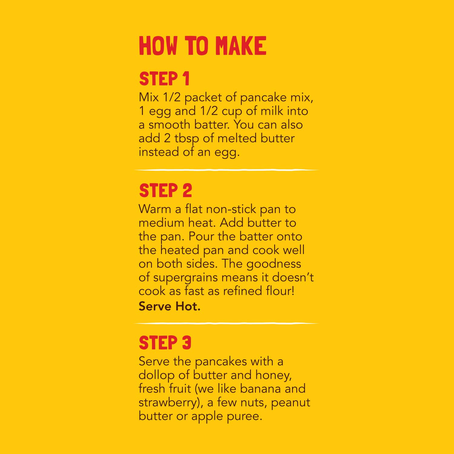 To make classic chocolate pancakes, simply mix the Slurrp Farm Millet Pancake Chocolate mix with milk and eggs (or plant-based alternatives for a vegan option) until you achieve a smooth batter. Heat a non-stick pan over medium heat, pour a ladleful of batter, and cook until bubbles form on the surface. Flip and cook until golden brown. Serve with fresh fruits, nuts, and a drizzle of honey or maple syrup.